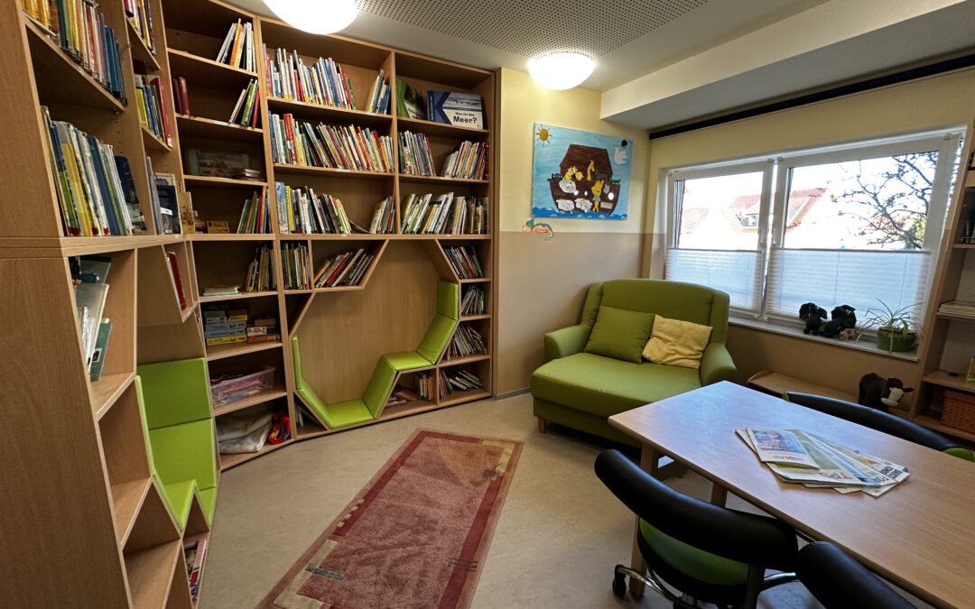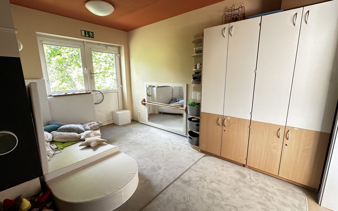 Unsere Räume verteilen sich über drei Etagen. Im Flur sehen Sie Infowände, die über Gruppenaktionen und über die Kooperation als Nationalpark-Kita mit dem Nationalpark Auskunft geben. Gleich im Eingangsbereich treffen Sie das Leitungsteam im Büro. Es gibt eine Lernwerkstatt zum Hämmern, Sägen, Basteln, eine Bibliothek, welche für Ruhemöglichkeiten für Kinder, Fachpersonal und auch als Raum für Elterngespräche einlädt.