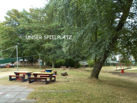Unser Außengelände mit einem Sandkasten und vielen Spielgeräten (Wippe, Kletterpyramide, Rutsche uvm.) ermöglicht uns einen regelmäßigen Aufenthalt im Freien. Große Bäume spenden viel Schatten. Kinder unter drei Jahren haben einen eigenen Spielbereich.